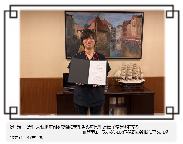 - 当院研修医が日本内科学会で優秀演題賞を受賞しました